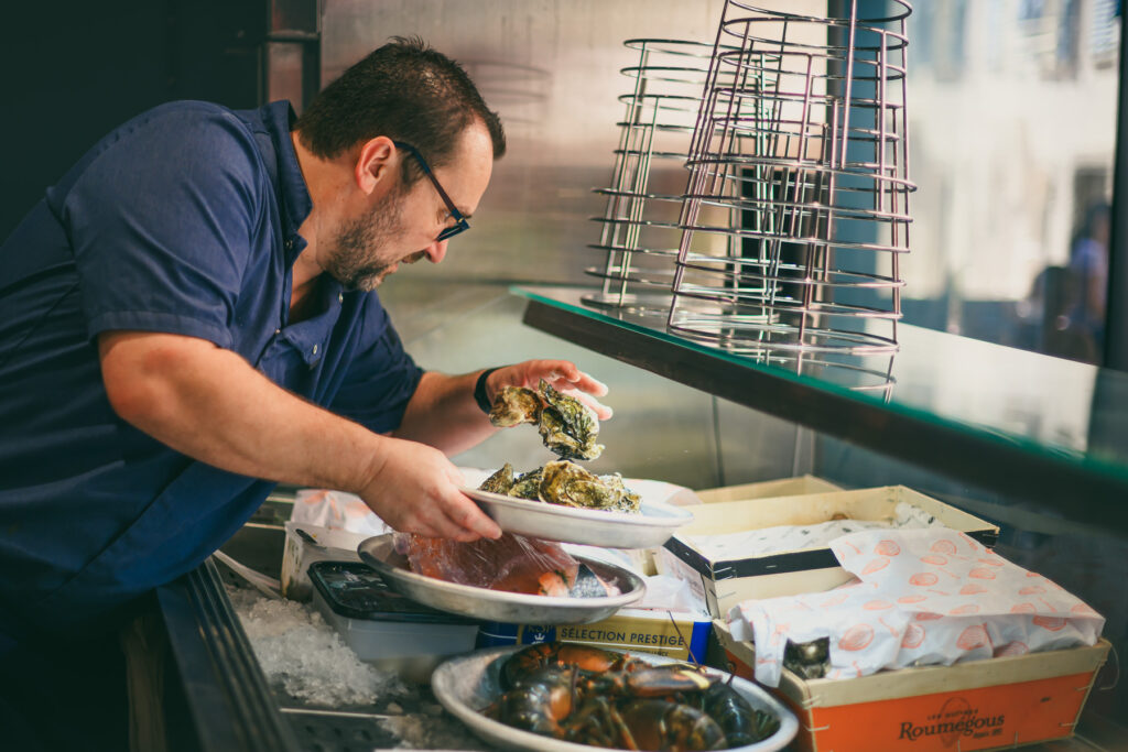 Les poissons et crustacés proviennent de petits pêcheurs locaux ou de grands mareyeurs bretons — comme les huîtres Gillardeau ou Roumégous.